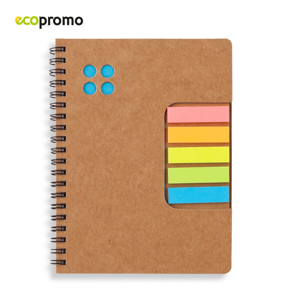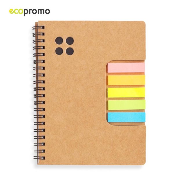 Libreta de cartón con 5 stickies adhesivos.