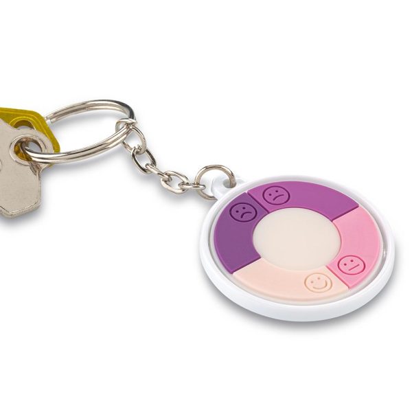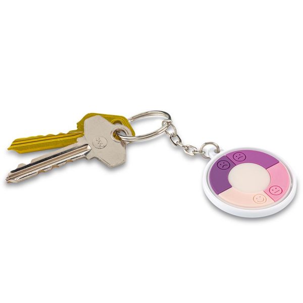 Llavero plástico, con indicador que cambia de color de acuerdo al nivel de luz UV en exteriores.