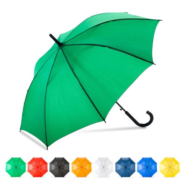 Poliéster. Apertura automática, cierre manual. Marco metálico. Mango curvo plástico con acabado caucho. 8 cascos.