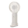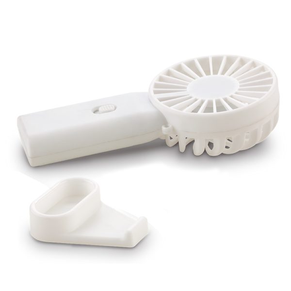 Ventilador manual de dos velocidades, con soporte de ensamblar para colocar en el escritorio. Pilas 3XAAA (no incluidas). Empaque caja individual.